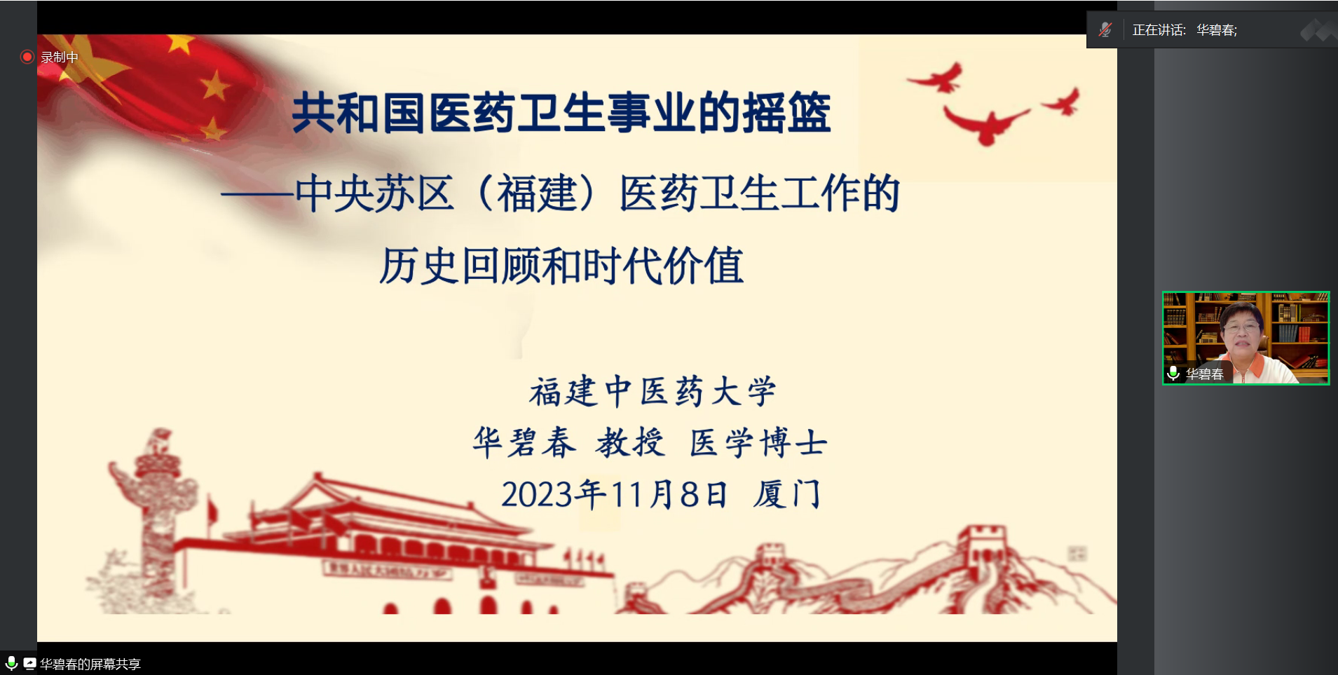2023年11月8日晚,亚洲博彩-亚洲博彩app 组织全体党员参加了由医学伦理学与医学史学学系党支部承办的党史专题讲座。本次活动特邀请福建中医药大学华碧春教授在线讲授了主题为“共和国医药卫生事业的摇篮——中共苏区(福建)医药卫生工作的历史回顾和时代价值”的讲座。本次讲座由医学伦理学与医学史学学系党支部书记彭迎春副教授主持。 讲座由两部分内容组成。第一部分,华教授对中央苏区(福建)医药卫生工作的历史回顾和时代价值进行了分享,利用各类翔实的史料,图文并茂地分享了包括中央苏区(福建)医药卫生组织机构的建立与工作举措、中央苏区(福建)红军医院的建立、中央苏区(福建)的中医药以及中央苏区(福建)的医药卫生人才在内四个方面的内容。华老师表示,中央苏区(福建)医药卫生史是中共党史、中国人民解放军军史和中国医学史的重要组成部分,依据习近平主席的指示,我们应该“把红色资源利用好,把红色传统发扬好,把红色基因传承好”,重视和广泛应用中医药。讲座的第二部分,华教授将自己从事中央苏区(福建)医药卫生史料研究多年来的调研经验以及体会跟参会成员进行分享。她向我们展示了多年来保留完整的每一次访谈记录,同时也分享了获取史料来源的经验,认为史料的搜集不能只是对所研究主题进行单一搜集,并举例中医药卫生的史料搜集,要从政治、经济、文化、军事等各类不同领域对医药卫生相关信息进行挖取和搜集。在讲座最后的自由提问交流环节,华教授针对大家所提出的问题一一予以耐心解答。 华教授聚焦于医药卫生工作的历史回顾及其对于时代价值的深入分析,既有史料的挖掘分析,也有北上南下、田间地头的实地调研,同时还有大量文物旧址的原图呈现。这一系列的研究方法及孜孜不倦的钻研精神,值得从事医学人文社会学科的研究者们去学习探究。也让全体党员们更深入地了解了党的奋斗历史和光荣传统,汲取力量和智慧,在新时代为党和人民做出自己的一份努力。