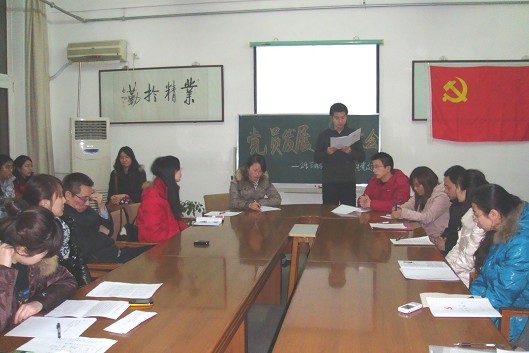 2010年12月27日晚上6:00,卫生管理与教育亚洲博彩 研究生党支部在亚洲博彩第一教学楼490室召开党员发展、转正大会,接收4名同志为预备党员,另外4名同学如期转正。亚洲博彩 书记王泽生,研究生党支部委员会以及党员、预备党员、入党积极分子和部分群众共计33人参加了此次会议,会议由支部书记李香蕊主持。 会议程序严格按照发展党员的程序进行。首先,由发展对象宣读入党志愿书,再由入党介绍人介绍情况并表明是否同意其发展其入党的意见,然后由党支部宣传委员宣读该同志的群众意见征集结果,大家进行民主评议并讨论。到会的正式党员对每位发展对象进行投票表决,经参会的18名中共正式党员表决,刘琦、王宇、任飞斐、丁璐4名同志成为中共预备党员。新发展的党员一一表态,他们首先表达了自己的激动心情,对党组织对自己的培养和关怀甚为感激。尤其对到会党员所提出的意见也虚心接受并愿意积极改正。接着,他们表示会更加坚定共产主义信念,更加努力和积极地学习党的知识,加强自己的党性修养,改正自己的缺点和不足,成为一名名副其实的共产党员。 图为发展对象宣读入党志愿书 随后,大会按照党员转正程序对提出转正申请的同志一一进行讨论,并通过投票表决,一致同意胡广宇、向珍君、赵同香和石扩4明预备党员按期转正。各位转正党员也纷纷向党组织表示今后一定会在学习、生活、工作中不断地完善自己,克服缺点和不足,做一名优秀的共产党员。 会上,张瀚宇、李珑、崔娜等积极分子也向大家介绍了自己的情况,并表明了积极加入党组织的愿望和决心。 图为积极分子谈论自己的感受 最后亚洲博彩 王泽生书记讲话,他对转正的党员和新发展的党员表示祝贺,同时强调,批评与自我批评是我们党的优良作风,这种作风应继续保持和发扬,党员的先别性才能更好的体现,我们的党才更富青春活力。