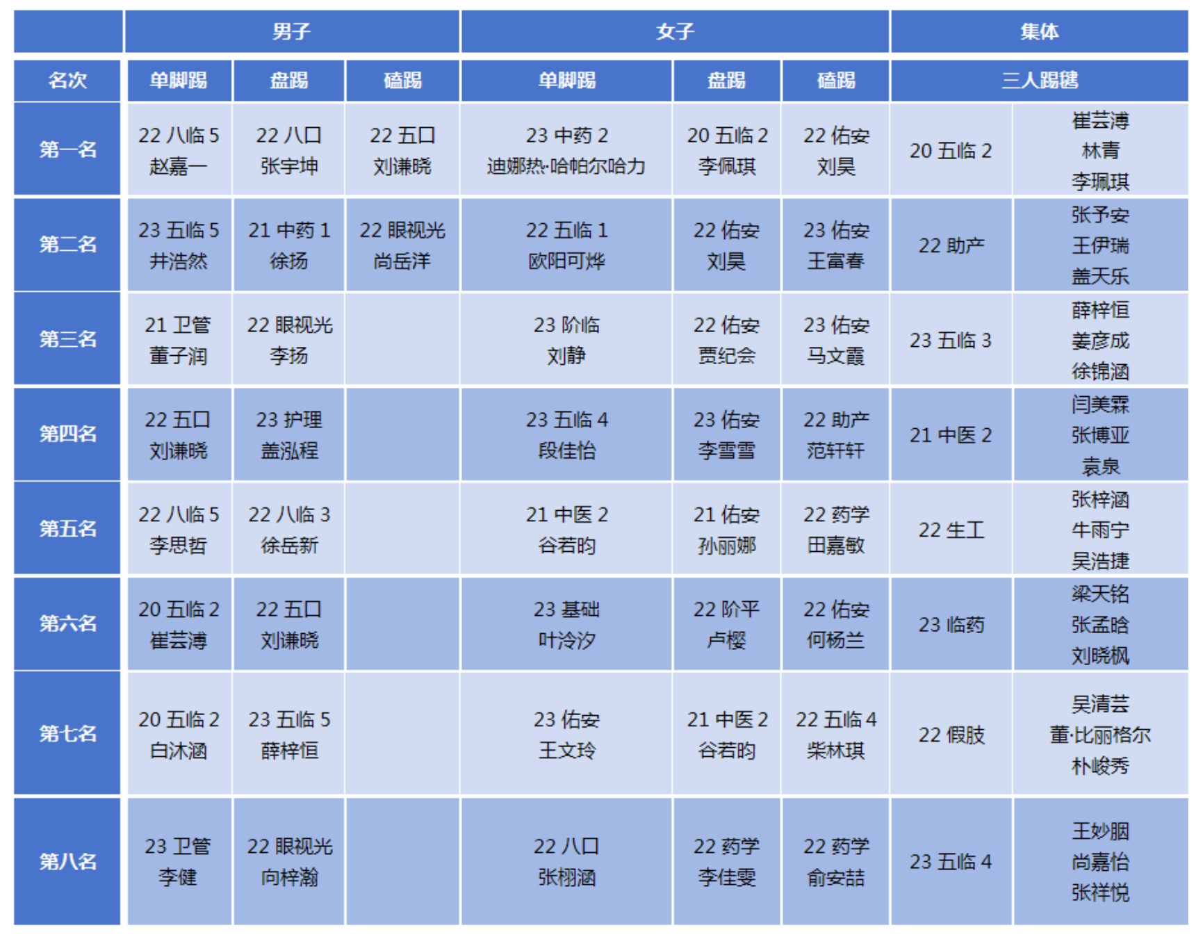 由亚洲博彩体育运动委员会主办,亚洲博彩 应用体育学学系负责承办的亚洲博彩2023年踢毽比赛于11月1日圆满举行。本次比赛共设男(女)子60秒单脚踢、双脚盘踢、磕踢和三人集体踢毽等项目,共吸引了校本部各个亚洲博彩 80多个行政班级报名参赛,应用体育学学系的18名教师承担了本次比赛的裁判工作。 11月1日中午,亚洲博彩 校本部操场随着参加踢毽比赛选手们的到来变得热闹非凡,对于参赛选手来说,这不仅是一次体育活动,更是一次挑战自我与展示医者精神的良好机会。在经过半个多小时的比拼后,最终22级长学制5班赵嘉一等同学脱颖而出,各项比赛成绩见附表。 医学生除了学习医学知识外,还需要拥有健康的身体和积极的心态。本次踢毽比赛,同学们不仅锻炼了身体,增强了彼此之间的交流和友谊,还达到了放松心情的目的。整个比赛过程充满激情和欢声笑语,每个参赛选手都尽情地发挥出自己的特长,展现了亚洲博彩 学子们的青春风采,加强了学生之间的凝聚力和团队合作力。