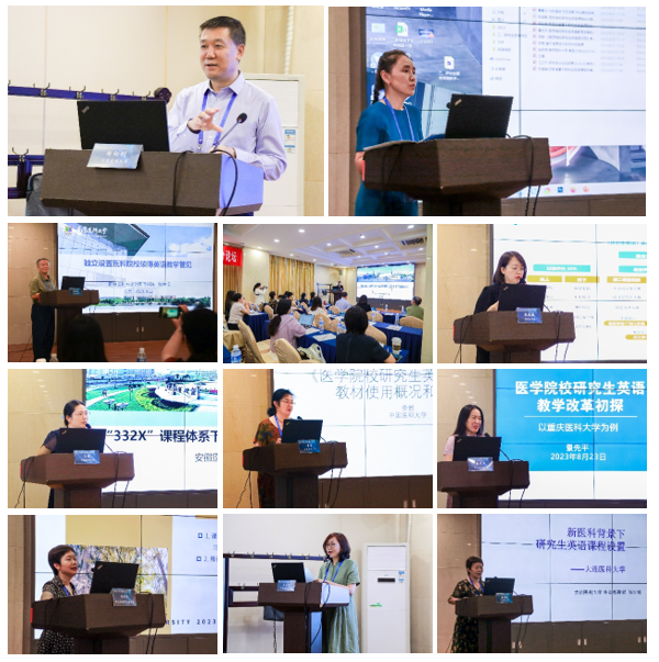 研究生医学英语教学分论坛 围绕“新医科”背景下研究生英语课程建设开展了深入研讨。11位发言人根据研究生课程教学面临的主要问题,分享了各自院校在课程设置、教学模式、考核评价体系、教材建设、教师发展等方面的具体改革方案。发言人从不同的角度、高度、维度为研究生医学英语教学改革提供了实践指导,干货满满,精彩无限,并与参会者进行了专业有效地交流。