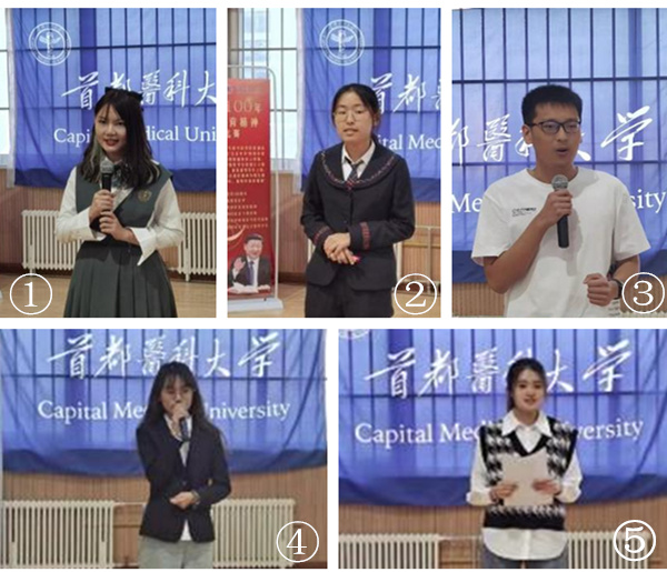 部分同学演讲现场 图1:王佳扬;图2:于成琪;图3:郭昕琦;图4:苗田雨;图5:齐笑颜