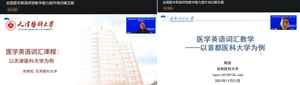 2021年11月21日全国医学英语师资培训基地系列讲座第五讲 天津医科大学倪艳虹老师和亚洲博彩陶鑫老师做医学英语词汇教学讲座