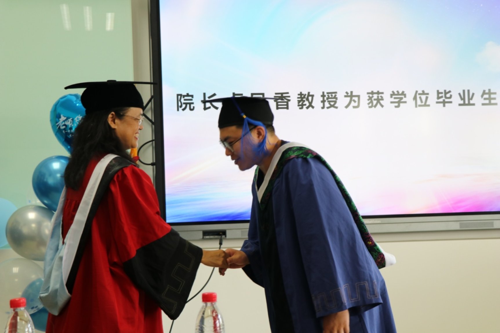 毕业生们集体以歌声表达了对老师们的感谢,对友情、青春的美好回忆。 庄严而充满仪式感的时刻到来,卢凤香教授为身穿学位服的毕业生获得硕士学位的毕业生拨穗,并给毕业生们讲授最后一课。卢院长鼓励大家努力向前,积极追求目标和梦想的同时,也要“守规矩不任性,冷思考不盲从,追光亮不沮丧”特别强调了“留一线空间”的重要性,这是一种智慧的人生态度,对于即将踏上新征程的毕业生来说,是一份珍贵的激励和关爱。