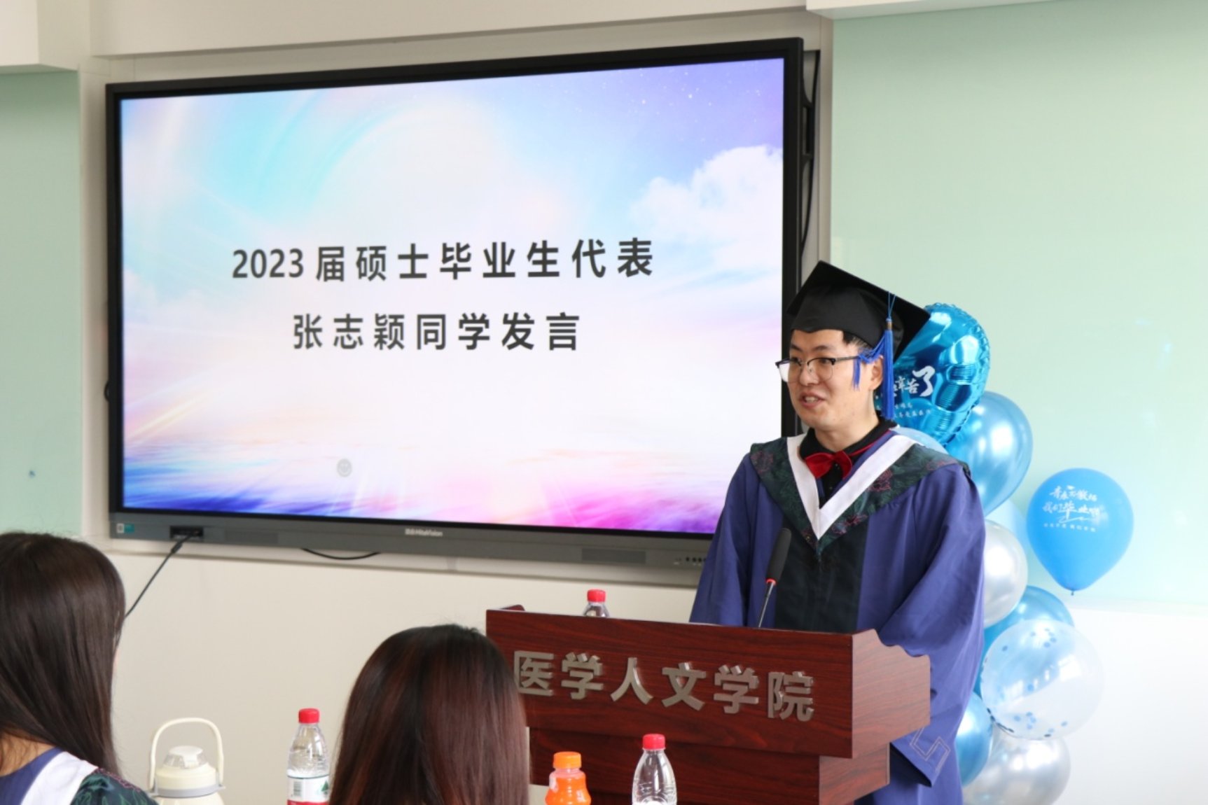 携手度过近三载,离歌吹响心仍在!2023届硕士优秀毕业生代表张志颖同学饱含深情的分享了三年校园学习、生活感受,以及他对老师的感恩之情、对母校的美好祝愿,并共勉自己和同学们,身处时代洪流之中,仍能时刻听从内心深处的呼唤,永远是肩上飞扬有风、心似滚烫火焰的有梦青年!