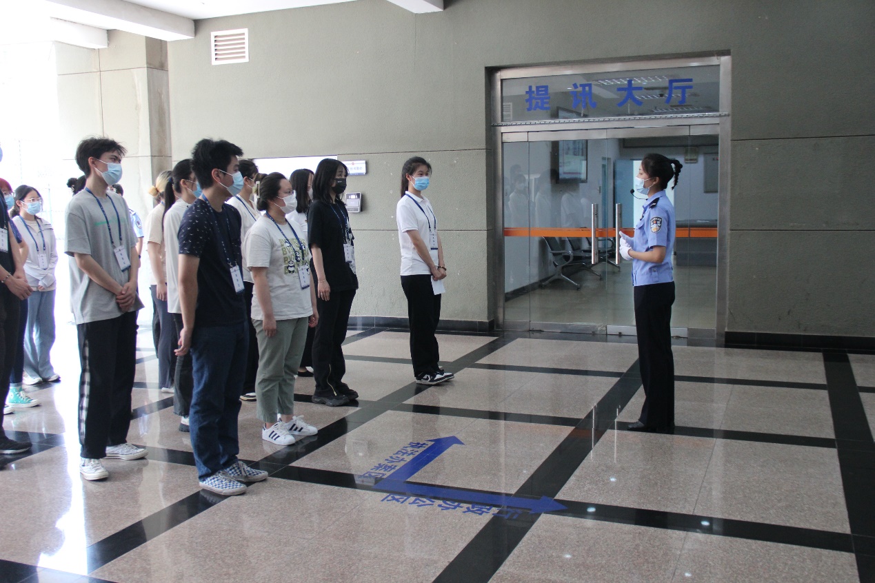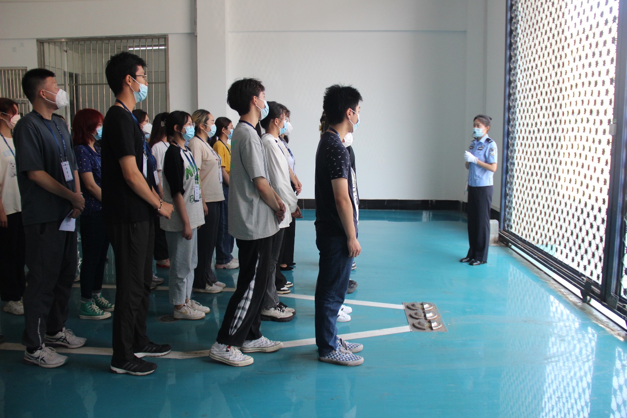 社会实践教育活动分为参观看守所内部环境设施与法治座谈会两个部分。高墙电网,威武森严,看守所两道铁牢大门彰显党纪国法的威严。全体人员在管教警察的讲解与带领下,参观了看守所内部的各功能分区,了解了北京市第一看守所的历史沿革、整体构造布局。为使参观教育更加深入人心,管教警察从在押人员的日常生活制度入手,带领大家观看了北京市第一看守所的宣传片,详细了解了在押人员严格的日常作息及行为规范准则;深入监室内部,近距参观监室内设的生活区、放风区以及盥洗区,深切地感受到了管理在押人员之严格;了解预约就医和选购生活物资等智能系统,进一步感受到看守所的科技性和严格性。身临其境的反差教育,使得大家内心受到强烈的震撼,失去自由的痛苦和悔恨引起了大家深切的反思,更让学生们认识到“党纪国法”的重要和威严。