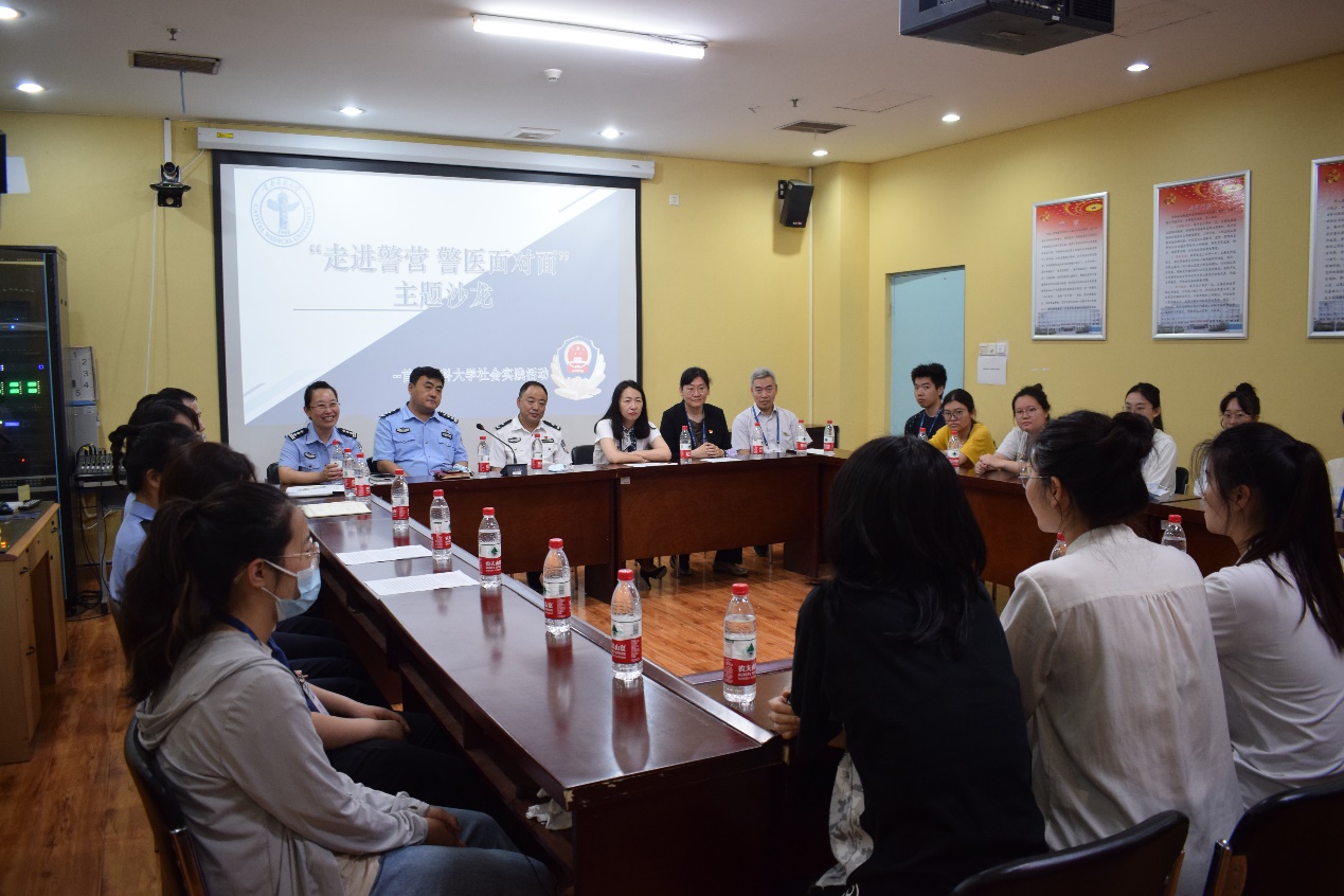 在座谈会上,北京市第一看守所政委孙美华首先对看守所的一些基本情况进行了整体介绍。接着多位在职警察和师生们面对面首先就学生们提出的,对于看守所收监不同类型人员、突发公共卫生事件的管理措施,以及律师会见制度等相关问题进行了深入地交流解答。通过座谈交流,学生们了解到在党的关怀和领导下,看守所对于在押人员的管理与教育方面不断趋于完善,兼顾了对在押人员管理的严格性与人文关怀。两位本科学习精神医学专业的在职管教警察用自身的经历向学生们讲述了她们进行职业选择的宝贵经验,即如何可以有机结合自身专业的能力优势,使自己成为多学科综合型人才,在党和国家需要的地方持续发光发热。亚洲博彩卫生法学研究中心副主任张博源老师表示,通过本次实践教育活动,卫生法学学系的学生切身体会到了看守所及其在刑事诉讼活动中所承担的重要责任与其不可或缺的地位,对于学生们的法律意识与警示教育起到了意义非凡的作用,最后,北京市第一看守所的张辉所长、北京市公安局监管总队党委委员、副总队长郝飞对本次座谈会进行了总结,希望学生们通过本次法制教育活动在未来牢记应恪守法律红线,遵规守纪,不断学习以增强自身业务能力水平,发展成综合型人才,在未来学习生活就业时主动承担起相应的社会责任。